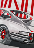 What makes the Carrera 2.7 RS such a special 911? Well, it was the first 911 to use the Carrera designation due to Porsche's class victories at the famed Carrera Panamerica, and the first 911 to use the RS moniker. The name means business, and so does the rest! The 2.7 RS was based on the top of the range 911 S, featuring some pretty extreme measures in the pursuit of performance. While enlarging the engine to 2687cc, the cylinder walls were left as thin (light) as mechanically possible, just like the bonnet, roof and wings were made from steel 0,08 mm thinner than on the standard model, these features resulted in a giant slayer, which is why we lovingly titled this hommage as "Lightweight Division". Porsche had planned to build 500 examples as the first 911 homologation special, what they weren't expecting was that all would be sold within a week of being presented at the Paris Motor Show in 1972! These special cars are easily identified by the low chin spoiler, famous ducktail rear spoiler and, being the 70's, a contrasting Carrera sticker all along its side.