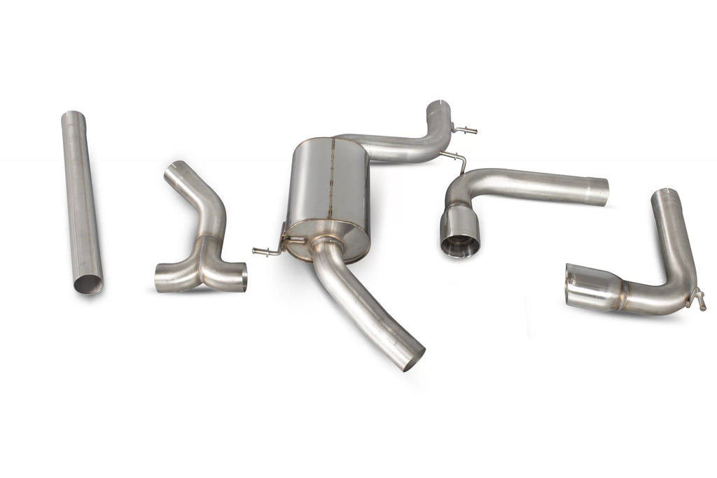 Catnack SCORPION fabricado em inox 304, tubo curvado e soldado a TIG com diâmetro de 76mm. Montagem a seguir ao downpipe, este sistema de escape usa ponteiras de 100mm Daytona e é a versão sem ressonador central para um som mais desportivo.